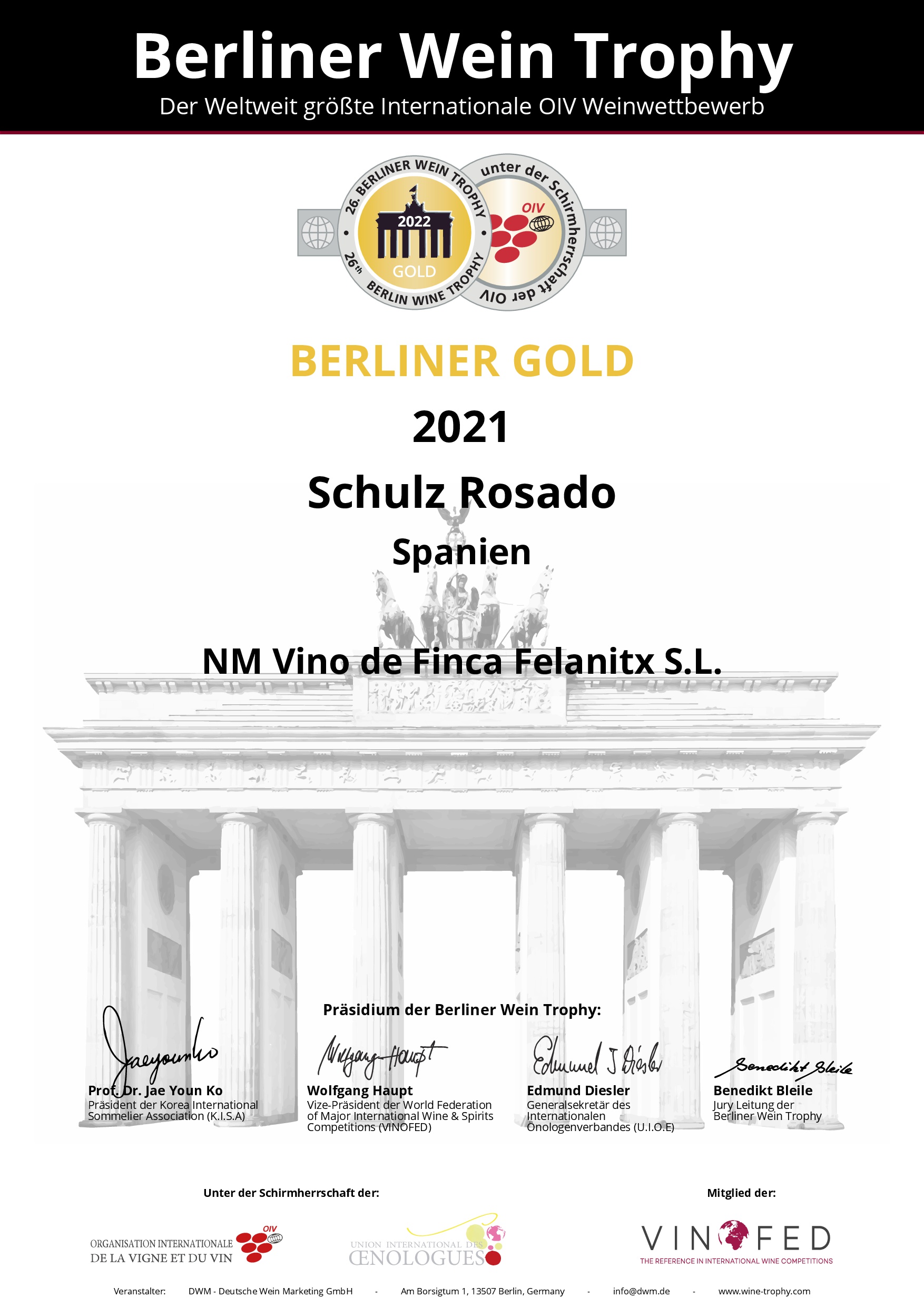 Goldmedaille Berliner Wein Trophy 2022