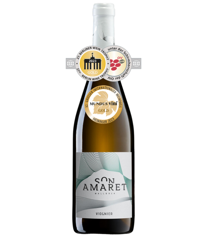 Der Jahrgang 2022 des Son Amaret Viognier erstrahlt in leuchtendem Zitronen-Goldgelb. Sein überströmendes Bouquet erstreckt sich von reifer Aprikose und Pfirsich über Williams-Christ-Birne bis hin zu blumigen Anklängen von Orangenblüten. Am Gaumen wird seine trockene Art flankiert von weicher Säure, majestätischer Struktur und langanhaltendem, fruchtig-kraftvollem Abgang. Der Son Amaret Viognier verbleibt sehr lange am Gaumen und möchte gerne gegrillte Languste mit mallorquinischer Sauce, Trüffel-Risotto oder weißen Spargel mit Sauce Hollandaise begleiten.